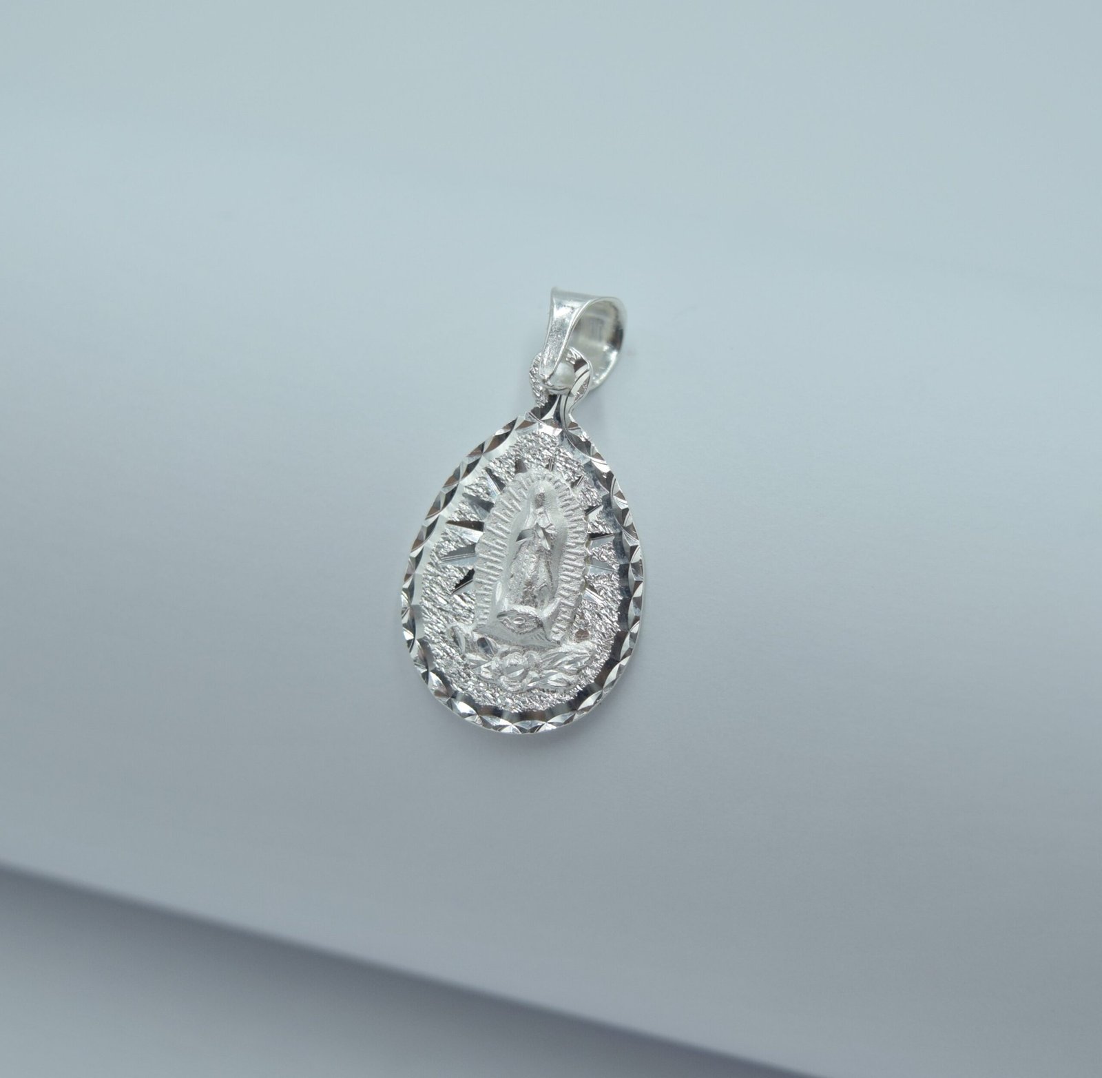 La Medalla Virgen de Guadalupe gota diamantada es el complemento perfecto para quienes buscan portar un símbolo de fe y tradición. Fabricada en plata .925, esta pieza destaca por su diseño elegante y significado espiritual.